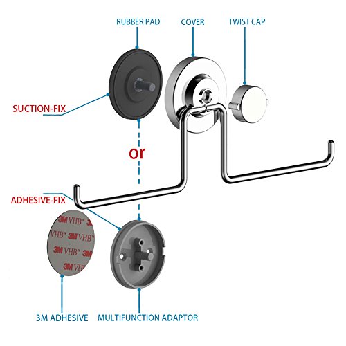 ֎SUPER-THICK 304 Stainless Steel and CORROSION RESISTANT PREMIUM FINISH - This incredible suction cup tissue holder is made up of high strength materials 304 stainless steel, which are chrome plated for a premium finish and high-corrosion resistance (5 years non-corrosion) and easy cleaning.