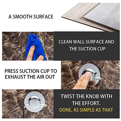 ֎CAUTIONS: 1, VACUUM SUCTION CUP must be applied to a smooth surface. 2, When the surface is not ideal, please use our MULTIFUNCTION ADAPTOR, 3M ADHESIVE, which is included in the package. 3, Clean the installation surface and the rubber suction cup. 4, Heavily Press the rubber vacuum cup on the installation surface to exhaust the air out of the suction pad. 5, Twist the knob with the effort until it is fully tight – AS SIMPLE AS THAT!