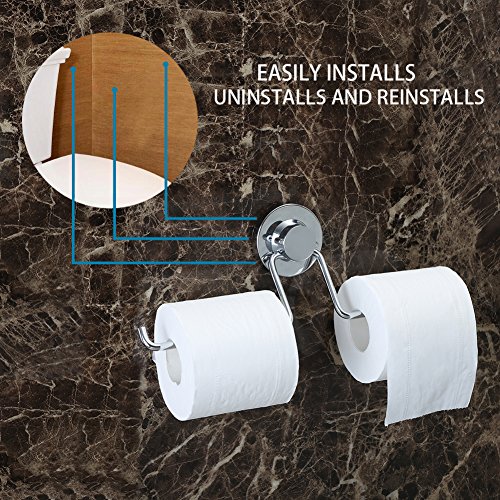 BRIOFOX Toilet Paper Holder for Bathroom Storage, Super Powerful Vacuum Suction Cup or 3M Self Adhesive Double Roll Toilet Tissue Holder, 304 Stainless Steel Towel Holder, Chrome