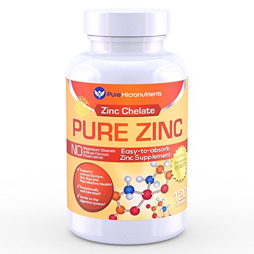 -. Binding : Health and Beauty -. Brand : Pure -. Color : Orange -. EAN : 0784672302166 -. Feature : USA Made. Practitioner Quality, Premium Chelated Zinc supplement, in an easy to swallow capsule that is gentle on the stomach. / Zinc chelate (Bisglycinate TRACCS) is clinically proven to be a highly absorbable and tolerable form of Zinc. † / Non-GMO and Free from Magnesium Stearate, Sugar, Salt, Gluten, Eggs, Soy, Dairy, Yeast, Preservatives, Artificial Colors or Flavors. / Perfect zinc vitamin supplement for men, women, elderly, pregnant women, & teenagers. / Zinc is the principal regulator of cell function and growth within the body. It is an essential mineral for DNA synthesis and cell division within the body, promoting reproductive, skin, hair and eye health. Zinc also boosts the immune system, promotes healthy cell replication, supporting optimal cardiovascular function and helps regulate moods. † Customer Promise - 60 day MONEY BACK GUARANTEE! -. Label : Pure Micronutrients -. LegalDisclaimer : We recommend that you do not solely rely on the information presented and that you always read labels, warnings, and directions before using or consuming a product. For additional information about a product, please contact the manufacturer. Content on this site is for reference purposes and is not intended to substitute for advice given by a physician, pharmacist, or other licensed health-care professional. You should not use this information as self-diagnosis or for treating a health problem or disease. Contact your health-care provider immediately if you suspect that you have a medical problem. †Information and statements regarding dietary supplements have not been evaluated by the Food and Drug Administration and are not intended to diagnose, treat, cure, or prevent any disease or health condition. -. Manufacturer : Pure Micronutrients -. ProductGroup : Health and Beauty -. ProductTypeName : HEALTH_PERSONAL_CARE -. Publisher : Pure Micronutrients -. Studio : Pure Micronutrients -. Title : Pure Zinc - Best Zinc Supplement, 25mg, 120 Count, Natural Bisglycinate TRACCS (Albion Labs Chelated Zinc) -. UPC : 784672302166