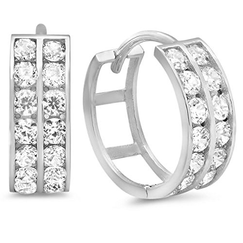 -. Title : 14k White Gold Round White Cubic Zirconia CZ Ladies Hie Hoop Earrings (4.5 mm Width x 12 mm Length)