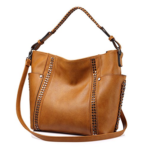 -. Feature : VINTAGE - Dark cortex matches black rivet, Gypsy hand-made straps mingle with chain , It's the ultimate handbag in terms of design, craftsmanship, and desirability / METICULOUS - Refined Rivet, every one is sewn by professional artisan. Hand-made shoulder straps, it looks more stylish while also comfortable for a long-term use / SPACIOUS - It's roomy enough to hold all your daily essentials: small laptop,cell phone, wallet, i-pad, umbrella, etc, thoughtfully put together for optimal organization. / PRACTICAL - 2 side pockets, designed for quick storage and retrieval of frequently needed items , especially when you are shopping or traveling, it is convenient to find small item quickly,like keys , cell phone, sunglasses, bus/train/airplane tickets or water bottle / GUARANTEE - We know you'll love our wallet as much as we do, If for any reason the wallet does not meet your expectations, please do not hesitate to let us know, our customer service team will give you a best solution. SIZE:12.2"x 11.8"x 5.9"(WxHxD)