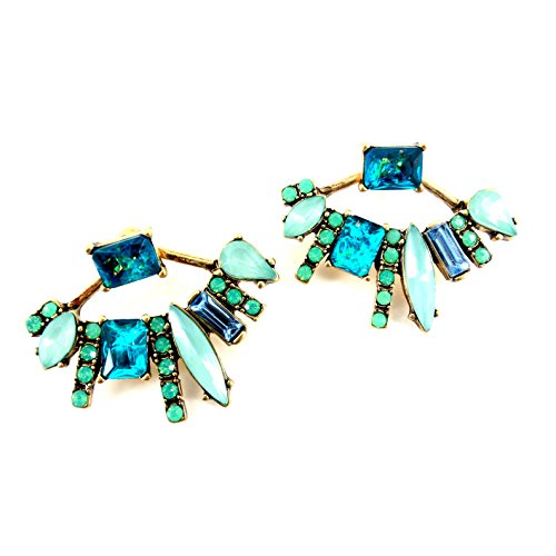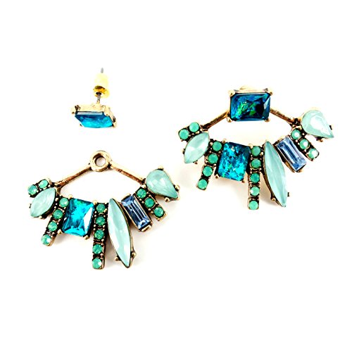 -. Feature : As seen in Life & Style, New trend 2016 Elegant Stylish Double Sided Ear jacket Earrings / Pop of color mix of mint green, opal fire blue brass plated fringe design Ear jacket earrings Tibal style / Street style fashion women's jewelry, blogger, Statement women's fashion Earrings / Light Weight, stay close / Pair of beautiful and stylish double sided studs Head turning, Hypoallergenic: Great for those with sensitive skin.
