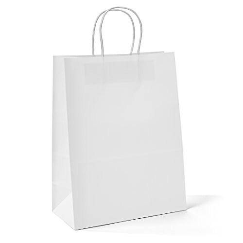 Halulu 25 Pcs 10"x5"x13" Kraft White Paper Handle Shopping Gift Merchandise Carry Retail Bags