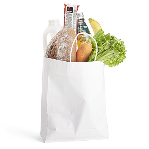 Strong and Versatile Bags: These bags are made with thick plain white Kraft paper and have a strong rope handle. They are strong and sturdy paper bags that can carry at least 15 lbs of weight easily. The box type bags have a flat bottom so they can stand well.