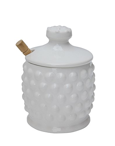 Creative Co-op Dolomite Hobnail Style Honey Jar with Wood Dipper, White