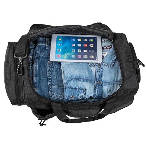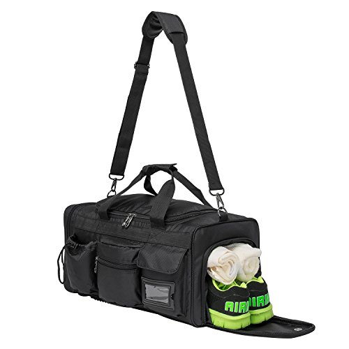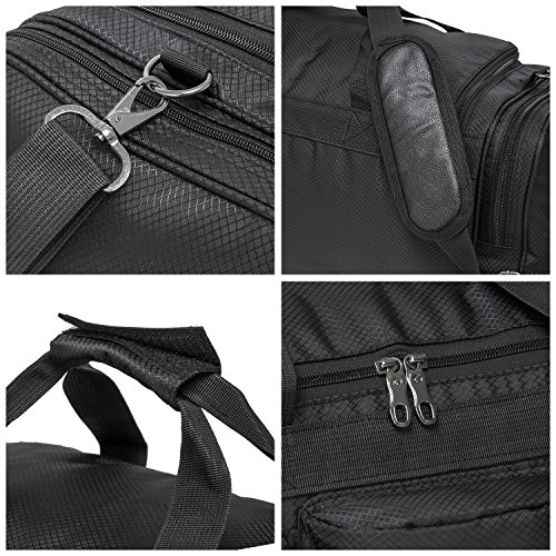 -. Feature : DURABLE: It is made of Nylon Fabric, Waterproof,Wear Resistant; high quality zippers. / SIZE: 18.9 x 9.8 x 9.8 inch (L*W*H) Weight: 1.98 lb,36L of storage, Great as a travel duffel, gym bag / STRUCTURE: This duffel bag is designed: 1 x main compartment,1 x shoe compartment ;1 x side pocket, 1 x drawstring pouch,1 x velcro pocket, 1 x zipper pocket on the front .Lots of different pockets for separating your necessities, and you can take what you wanna get quickly on the front pockets. / Multi-purpose: one nice adjustable/removable strap with anti-slip shoulder pad ,this bag can be used as a duffel bag/handbag/shoulder bag when go on a work, school, traveling,hiking, sport and etc. / OCCASION: Awesome duffel bag for gym sport,working,traveling hiking,school and daily using.Very convenient and comfortable to carry .