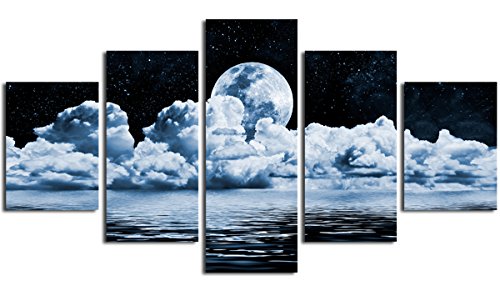 -. Binding : Kitchen -. Brand : DZL Art -. Feature : High Definition Giclee modern art work, picture photo printing on high quality canvas. A great gift idea for your relatives and friends. / Stretched and Framed art printing. Each panel has a black hook already mounted on the wooden bar for easy hanging out of box. / Non-trace nail provided, it nail tiny holes, keep your wall clean and tidy. / A perfect choice for wall decoration and home decorations. -. IsAutographed : 0 -. Label : DZL Art -. Manufacturer : DZL Art -. PackageQuantity : 5 -. ProductGroup : Home -. ProductTypeName : HOME -. Publisher : DZL Art -. Studio : DZL Art -. Title : DZL Art S133 Landscape Abstract Canvas Print Painting Modern Canvas Wall Art for Home Decoration,Framed- 5 Panels Sea White Partly cloudy Moon in the Night Painting Wall Art Picture Print on Canvas