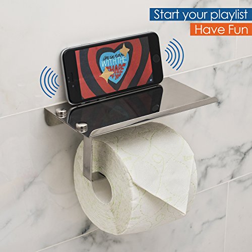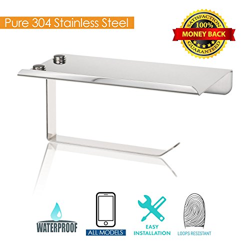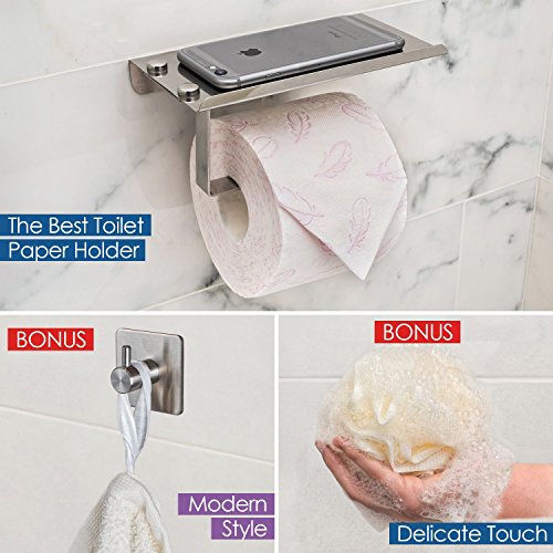 - ✅ THE BEST TOILET PAPER HOLDER WITH SHELF: While others still use the past, we brought here the future! Your searches for the best product will end here because you just found what you were looking for. Our self adhesive toilet paper holder with phone shelf has a verified quality, is made of 100% stainless steel and it can’t be compared to similar products because it is unique!