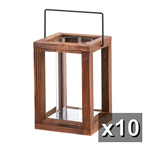 -. Title : Rustic Garden Wood Frame Hurricane Candle Lantern Set Of 10