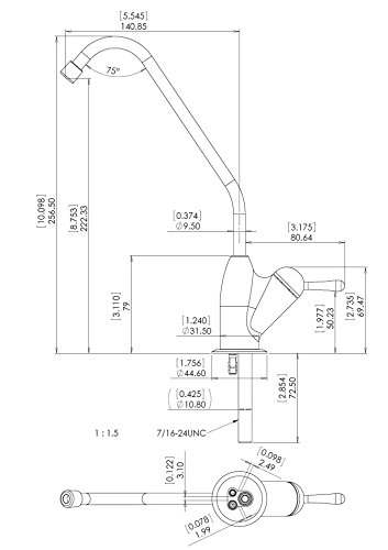 fits opening between 7/8” and 1-1/4”; fits countertop up to 1-7/8" thick; connected with 1/4” drinking water supply tube (not included); for 3/8" supply tube, a quick-connect adapter (ASIN B0796JNK4Z) is needed and sold separately