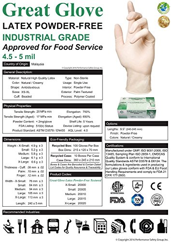 GREAT GLOVE 20015-L-BX Latex Powder-Free 4.5-5 mil General Purpose Glove, Large, Natural (Pack of 100) B0002Z8TYC