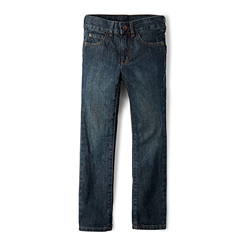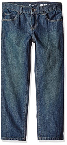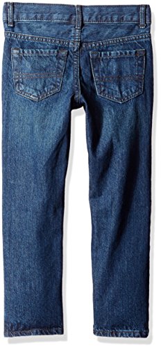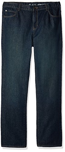 Five-pocket styling with a traditional fit in the hip and thigh straight leg