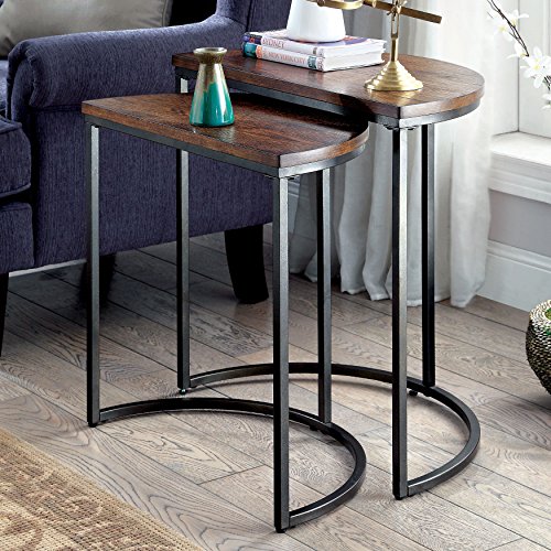 -. Brand : Furniture of America -. Color : Brown -. Feature : Smaller table dimensions: 22 inches high x 22.25 inches wide x 12.75 inches deep / Larger table dimensions: 24 inches high x 24.25 inches wide x 13 inches deep -. Label : Furniture of America -. Manufacturer : Furniture of America -. Model : IDF-AC157 -. PackageQuantity : 1 -. ProductGroup : Furniture -. ProductTypeName : HOME_FURNITURE_AND_DECOR -. Publisher : Furniture of America -. Studio : Furniture of America -. Title : Nesting Table Modern Style Semi-Circle Top Medium Weathered Oak Finish