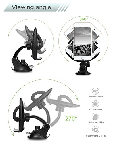 [Adjustable&Compatibility] This car mount fit for iphone 6/6 plus/5s/5c/4s, Galaxy S4/S3/S2 and most smartphones[Strong Suction] Works in all cars,PC+ABS material,strong suction cup attaches to the windshield or most smooth, flat surfaces and is easily removable.360 ° telescopic rotating adjustable holder capable of displaying your device at virtually any angle or orientation