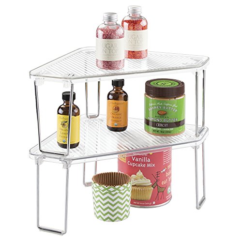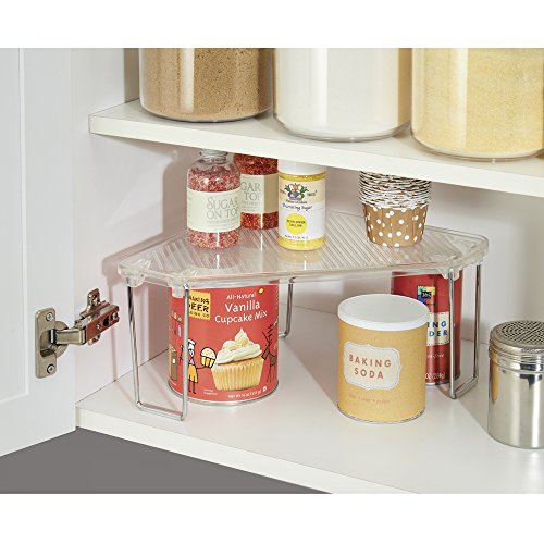 mDesign Corner Storage Shelf for Kitchen Cabinets, Countertops, Pantries - Clear