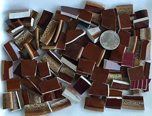 MOSAIC TILE ~ Broken Hand Cut Plates ~ China & Stoneware Dish Pieces ~ Supply for Mosaics Arts & Crafts ~ 100 Brown Tiles Solid Color and Pattern Mix (T#376)