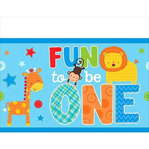 One Wild Boy Birthday Party Plastic Table Cover, Multi Colored, plastic, 54 inches x 102 inches
