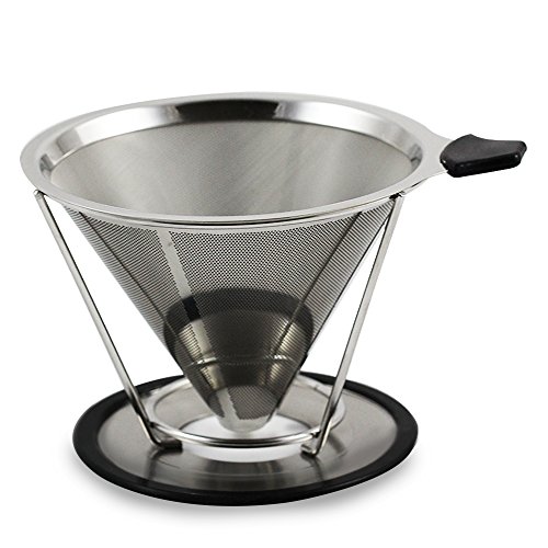 -. Feature : BETTER TASTE! Pour over dripping is absolutely the best tasting cup of coffee you can brew. By slow straining the water through our steel mesh filter essential nutrients and oils have time to bond with the brew like no other method creating the most flavorful cup. / EASY CLEAN! Simply rinse it out in the sink or throw it in the dishwasher. Our stainless steel product cleans easily with a minimal amount of soap or scrub required. / HEALTHIEST WAY TO PREPARE COFFEE! Regular paper filters can leave behind unwanted paper and chemical particles that are not meant for your body to process. With our stainless steel filter there is not unwanted residue or particles in your brew. / 4 CUP CAPACITY! You can control exactly how you like your coffee taste. With a four cup capacity you can add as much or as little grounds as you desire. The ability to determine your quantity and quality is in your hands. / HEAT RESISTANT! Our silicone tab is heat resistant and secures your grip on the filter.