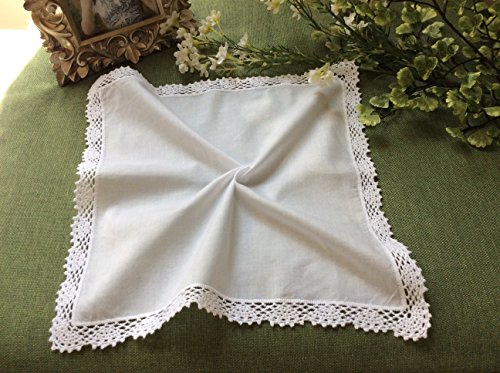 This lovely and classic white handkerchief is made of 100% cotton (solid fabric and lace trim). It is a perfect accent piece for any special occasion such as for a wedding gift or for dressing up a fine outfit. Embroidered monogram can be added on fabric. For better care, please press after machine or hand washing.