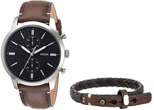 Townsman 44mm Chronograph Brown Leather Watch and Jewelry Box Set