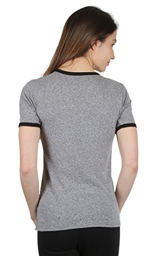 Ringer style heather gray t-shirt featuring Mickey and Minnie Mouse Disneyland.