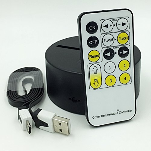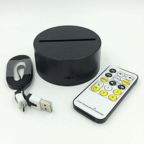 LED Lamp Base for 3D Illusion Acrylic Light Panels, Remote Control Dimming Fading and Flashing, Power with 3x AA Batteries or Included USB Cable