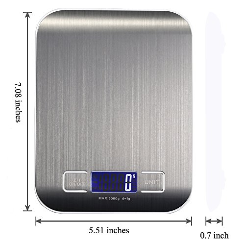 - EASY TO USE: PRECISE MEASUREMENT: Highly precise strain gauge sensors deliver results that can betrusted. 11lb/5kg capacity with a division of 1g.Perfect for Kitchen Cooking and Coffee