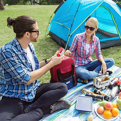 ■ Keep your food cool and safety This cooler bag for hiking choose high quality thicken PEVA hot-pressed material to keep your snacks and drinks cool for 16 hours temperatures below 15℃(with Freeze Packs.