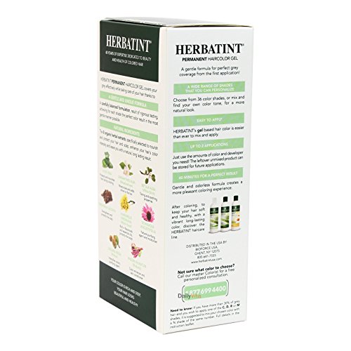 -. Binding : Health and Beauty -. Brand : Herbatint -. Color : Blonde -. EAN : 0794437304410 -. Feature : Herbatint is the finest, most natural permanent hair colouring gel free of harsh chemicals and Ammonia / Herbatint -. IsAdultProduct : 0 -. Label : Herbatint -. LegalDisclaimer : Actual product packaging and materials may contain more and different information than what is shown on our website. We recommend that you do not rely solely on the information presented and that you always read labels, warnings, and directions before using or consuming a product. Please see our full disclaimer below. -. Manufacturer : Herbatint -. MPN : 022679-5 -. NumberOfItems : 1 -. PackageQuantity : 1 -. PartNumber : 022679-5 -. ProductGroup : BISS -. ProductTypeName : HEALTH_PERSONAL_CARE -. Publisher : Herbatint -. Size : 135 -. Studio : Herbatint -. Title : 6D Herbatint Dk Golden Blonde 4 OZ -. UPC : 666248001126