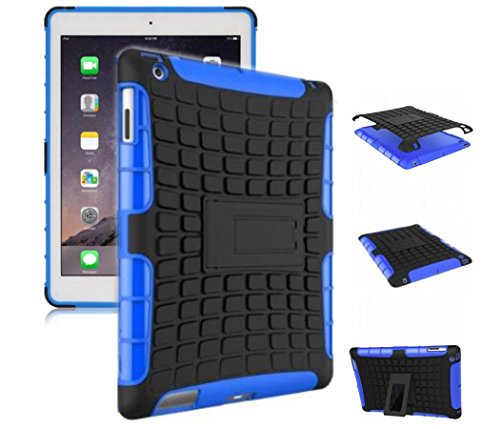 Protective Heavy Duty Tough 2 In 1 TPU+PC Design Holder Case Cover For Apple ipad 2nd , 3rd , 4th Generation Model : A1395, A1396, A1397,A1416, A1430, A1403,A1458 ,A1460 or A1459 ( Black with Blue )