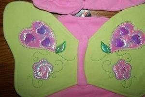 -. Brand : The Children's Place -. Color : Pink and Green -. Department : baby-girls -. EAN : 0408584007826 -. Feature : Head, body, booties and wings included. / Size 12-18 months. / Pink butterfly with detachable wings. -. Label : the Childrens Place -. Manufacturer : the Childrens Place -. ProductGroup : Apparel -. ProductTypeName : BABY_COSTUME -. Publisher : the Childrens Place -. Size : 12-18 months. -. Studio : the Childrens Place -. Title : Childrens Place Pink Butterfly Halloween Costume Size 12-18 months -. UPC : 408584007826