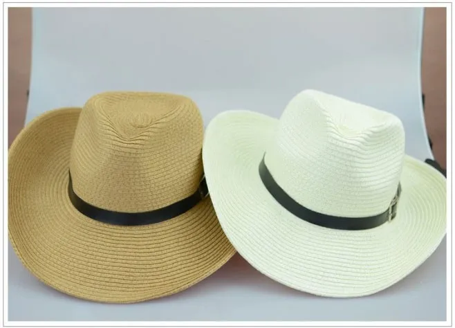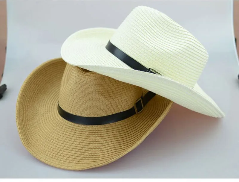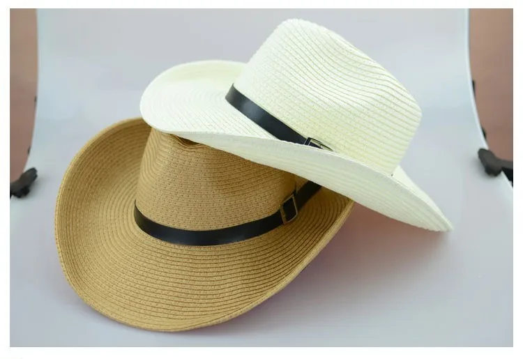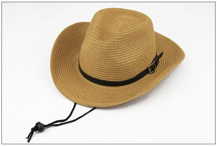 わら編み男性カウボーイ帽子付きバックル西部アメリカメンズ帽子固体カーキ