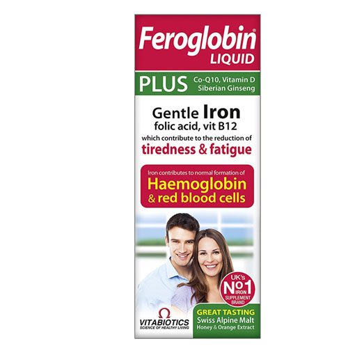 Feroglobinâ plus is an advanced liquid iron formula which provides the benefits of feroglobin-b12â plus extra nutrients such as greet tea extract flax seed oil and siberian ginseng. The delicious honey and orange flavour liquid provides all the benefits of feroglobinâ original including gentle on the stomach liquid iron plus nutrients for extra energy release. The advanced formula contains siberian ginseng vitamin d3 co-q10 l-carnitine green tea and beetroot extracts. Feroglobin plusâ offers even greater support to help maintain energy release and vitality. The comprehensive formula with iron which contributes to normal formation of red blood cells and haemoglobin and normal oxygen transport to every tissue and organ in the body. The range also includes fergolobin-b12â . Feroglobinâ plus liquid 200ml helps to maintain vitality & energy release. Liquid food supplement with iron vitamins plus siberian ginseng and co-q10 in a blend of malt & honeyFeature
