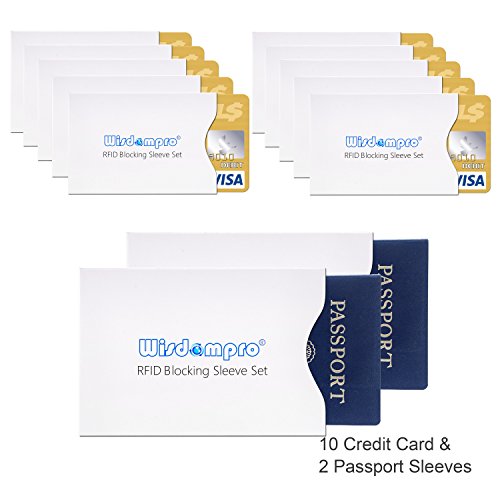Wisdompro® RFID Blocking Sleeves Set Includes Ten (10) Credit Card Size and Two (2) Passport Size Protectors