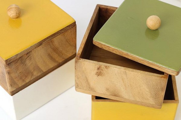 きれいに塗られたカラーと木目の自然の風合いがおしゃれ。 生産国:タイ 商品サイズ:縦約11cm×横8.7cm×奥行8.7cm ※サプライヤー直送品 ご注文後5~6営業日後の出荷となります【商品名】アカシア スタッキングボックス スクエア キャメル 45076148