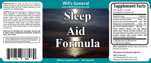 -. Binding : Health and Beauty -. EAN : 0701748888980 -. Feature : IMPROVE quality and length of sleep. / Help relieve tension and anxiety. / Wake up rested and refreshed / The perfect mix to stimulate sleep required for your brain to achieve a natural, healthy sleep / Sleep aid pills for adults -. Label : Will's General -. Manufacturer : Will's General -. ProductGroup : Health and Beauty -. ProductTypeName : HEALTH_PERSONAL_CARE -. Publisher : Will's General -. Studio : Will's General -. Title : Sleep Aid Natural pills ! ★ Sleep Better ★ Wake Up Rested and Refreshed, Achieve a Natural and Healthy Sleep! Natural Sleep Aids !! PROMOTIONAL PRICE! -. UPC : 701748888980