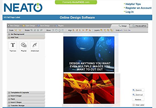FREE DESIGN SOFTWARE WITH ALL LABELS: Get a registration code complimentary with any purchase of labels or inserts. This software will help you design Neato Labels, Cell Phone Skins, Inserts, Beer Labels, and Wine Labels. It comes with templates for Avery, CD, Stomper, and Memorex discs labels, as well. Simple and fun to use, you’ll never use another labeling software again.