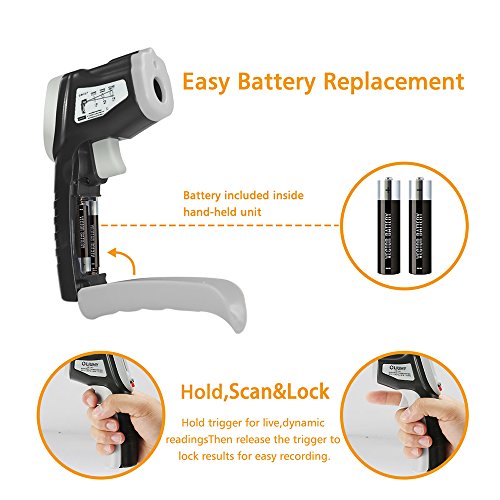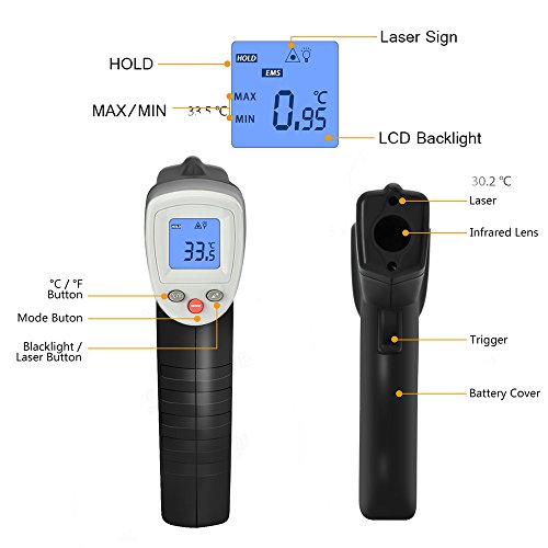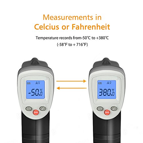- LARGE MEASUREMENT RANGE: -58 ℉ ~ 716 ℉ / -50 ℃ ~ 380 ℃, IR Infrared technology can be easily in the barbecue, Air Conditioner, home maintenance and other work.