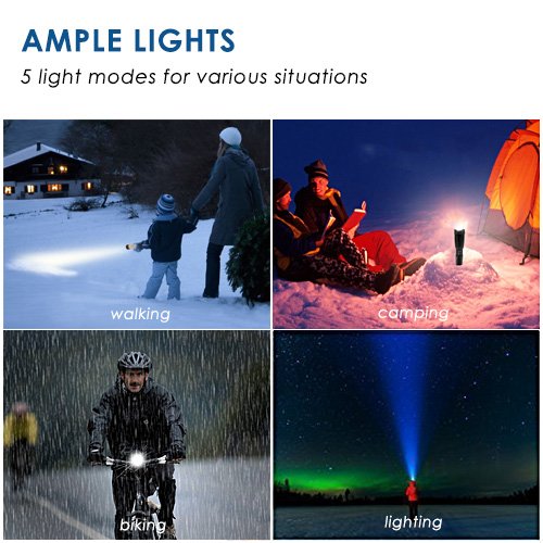 - ★SUPER BRIGHT LED: Latest adjustable flashlight design, high-efficiency and great illumination output from the superior and stable XML-T6 LED, Sweep bright light beyond the length of two football fields (826 ft).