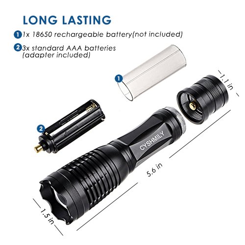 - ★ENERGY-SAVING & PROLONG LIFE: This adjustable flashlight uses 1*18650 battery(not included) as power supply, which enables you to carry the battery operated led flashlight to anywhere that you need a bright handy light.