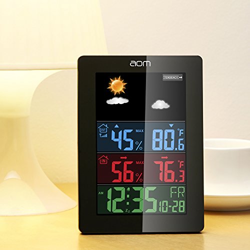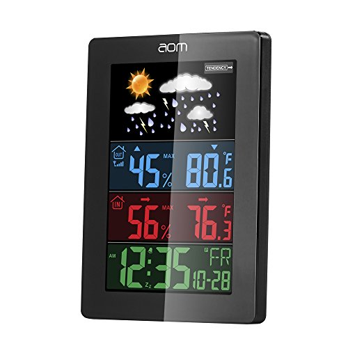 Indoor Outdoor Thermometer, Wireless Color Weather Station with Outdoor Sensor, Digital Temperature and Humidity Monitor with Forecast/Temperature/Humidity/Calendar/Alarm Clock