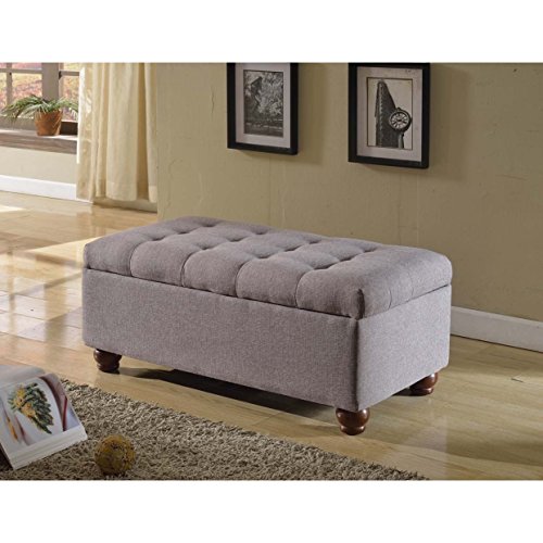 -. Title : Tufted Linen and Upholstered Grey Storage Ottoman Bench Furniture with Cushion and Safety Hinge (Great for Bedroom/Living Room)