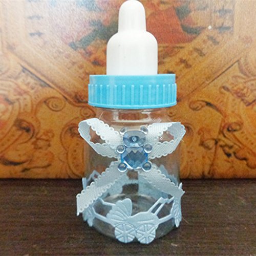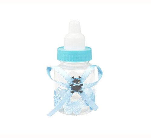 Baby Shower Favors Fillable Plastic Mini Bottle Candy Gift Box for Boy Girl Newborn Infant Baptism Christening Birthday Party Decoration (Blue)