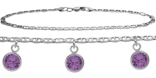 -. Title : 14K White Gold Mariner Anklet with Genuine 2.10 Carat Amethyst Round Charms