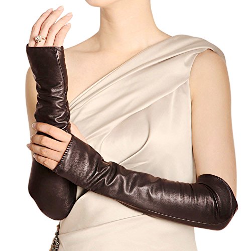WARMEN Ellbogenlange, fingerlose Damen-Fahrerhandschuhe aus echtem Nappaleder, ideal zum Pelzmantel