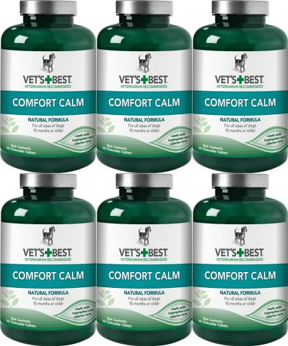 Vet's Best knows that dogs are prone to varying levels of stress, anxiety, and nervousness depending on their immediate environment. Vet's Best Comfort Calm helps your dog relax during stressful moments. Comfort Calm contains an effective calming formula without any adverse side-effects. Vet's Best's formula reduces tension and anxiety resulting from stressful activities and from high-decibel noises like thunderstorms and fireworks. Comfort Calm promotes relaxation without drowsiness through natural ingredients like tryptophan, valerian root, and chamomile.
