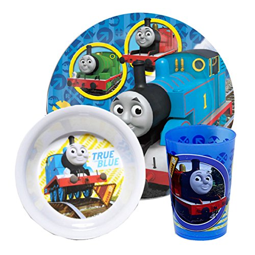 -. Feature : Make meal time fun with this Thomas the Train dinnerware pack. / Colorful 4-piece Thomas and Friends dining set includes vinyl placemat, bowl, tritan water bottle and sticker pack. / Durable materials and construction last wash after wash. Melamine, BPA free. / Food safe. Dishwasher safe. Do not microwave. Wash before first use. / Perfect for any Thomas the Train fan. Officially licensed Thomas and Friends dishes.