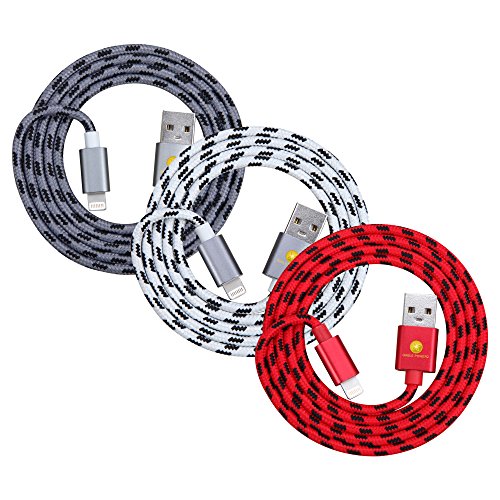 iPhone 7 Lightning Cable, Pack of 3 Super Braided 8-Pin Lightning to USB Cord Lightning Cable Charger Sync & Charge for iPhone 7 / 7 Plus, 6S / 6S Plus [3FT/1M] - Red Gray White