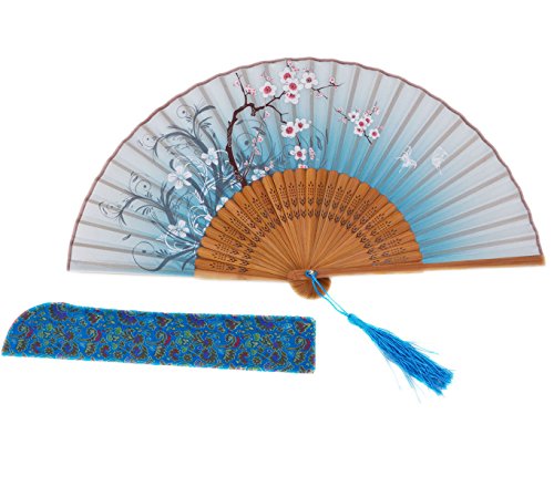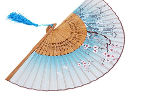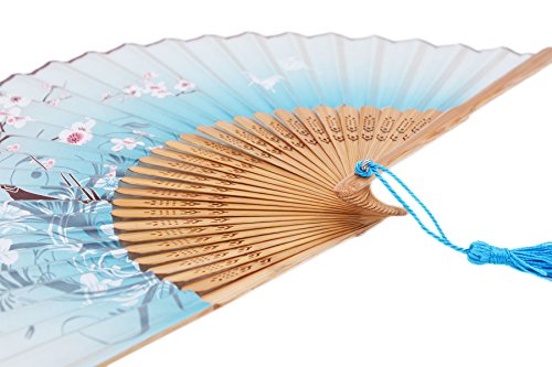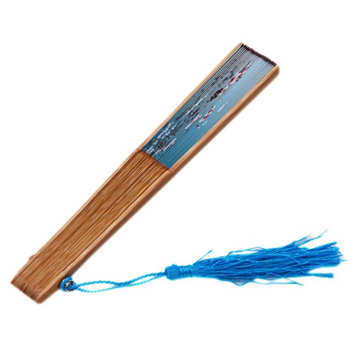 Amajiji Chinese /Japanese Vintage Retro Style Women Folding Fan Hand Fan with Tassel Wedding Party Gift LXH (20CM) (Sky Blue)